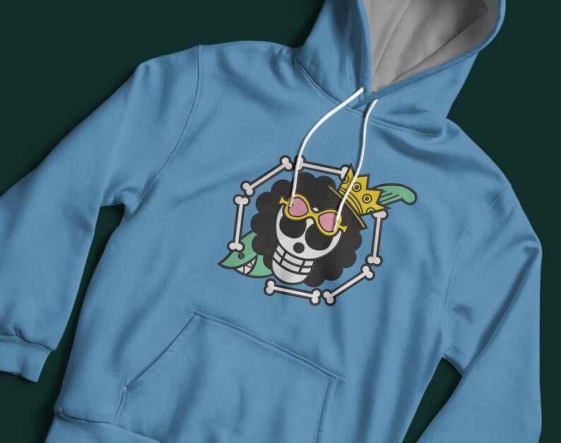 Step into the spotlight with the Brook Embroidered Hoodie, inspired by beloved Soul King himself! This hoodie features intricate embroidery of Brook’s iconic skeleton smile, afro, and signature rockstar look, perfect for fans who appreciate his unique charm, humor, and musical flair. Whether you’re a fan of his bone-chilling tunes or his unwavering loyalty to the Straw Hat Crew, this hoodie captures the essence of Brook’s unforgettable style.