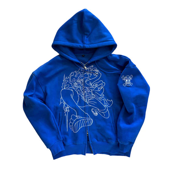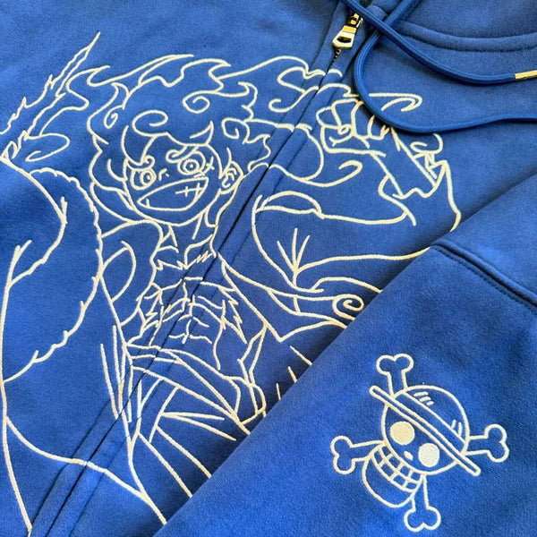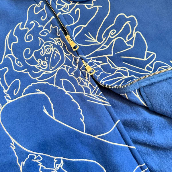 Oversized Embroidered Hoodie Luffy Gear 5 Zip-Up