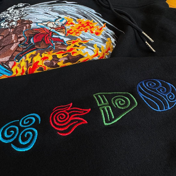 Avatar Black Embroidered Hoodie for Unisex – Master the Elements in Style
