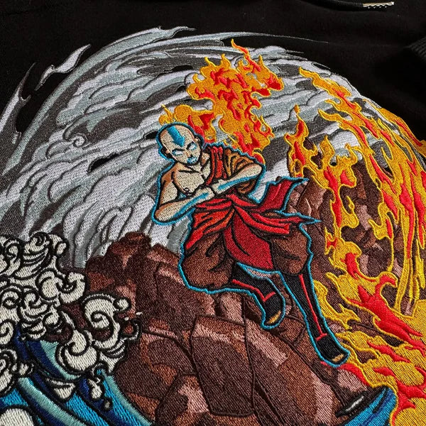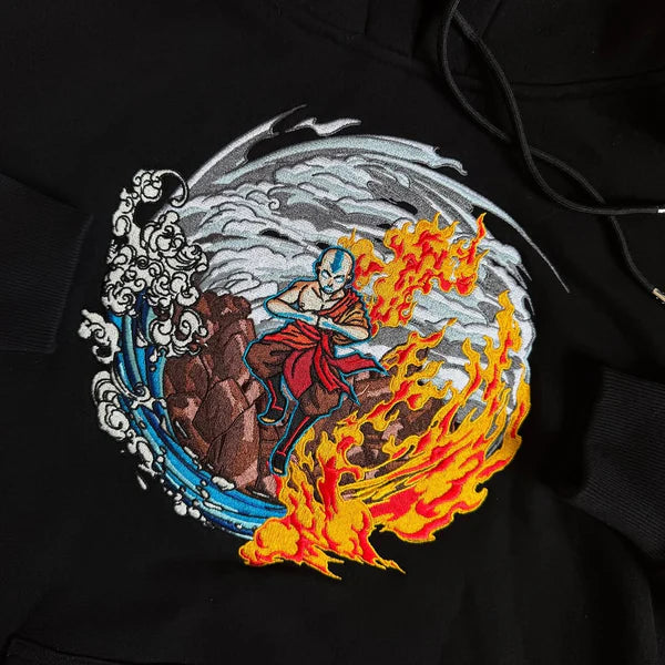 Channel your inner Avatar and showcase your elemental pride with the Avatar Black Embroidered Hoodie — a perfect fusion of anime passion and casual streetwear!
