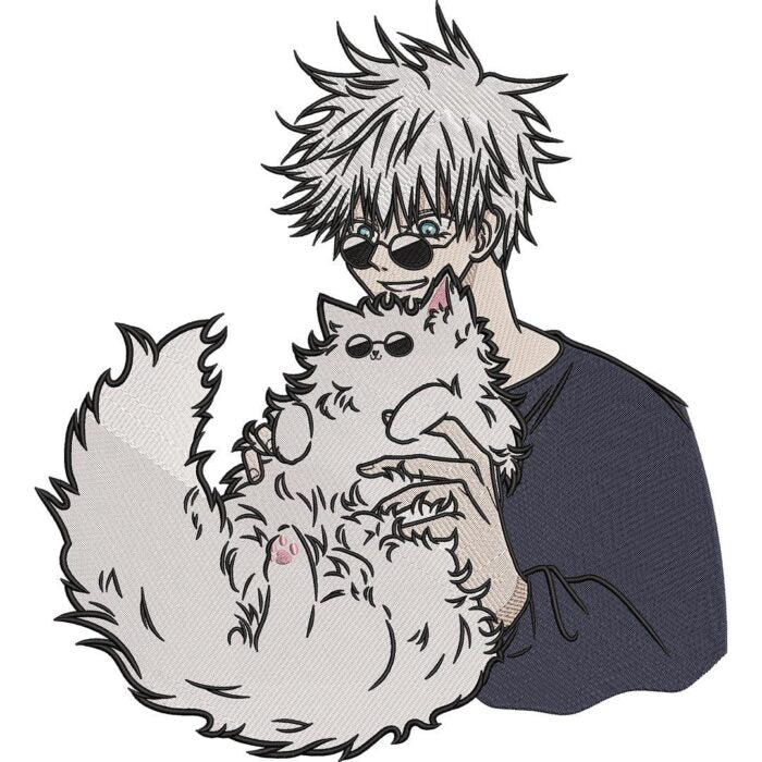 Gojo x Cat Embroidered Sweatshirt – Infinite Style Meets Feline Charm