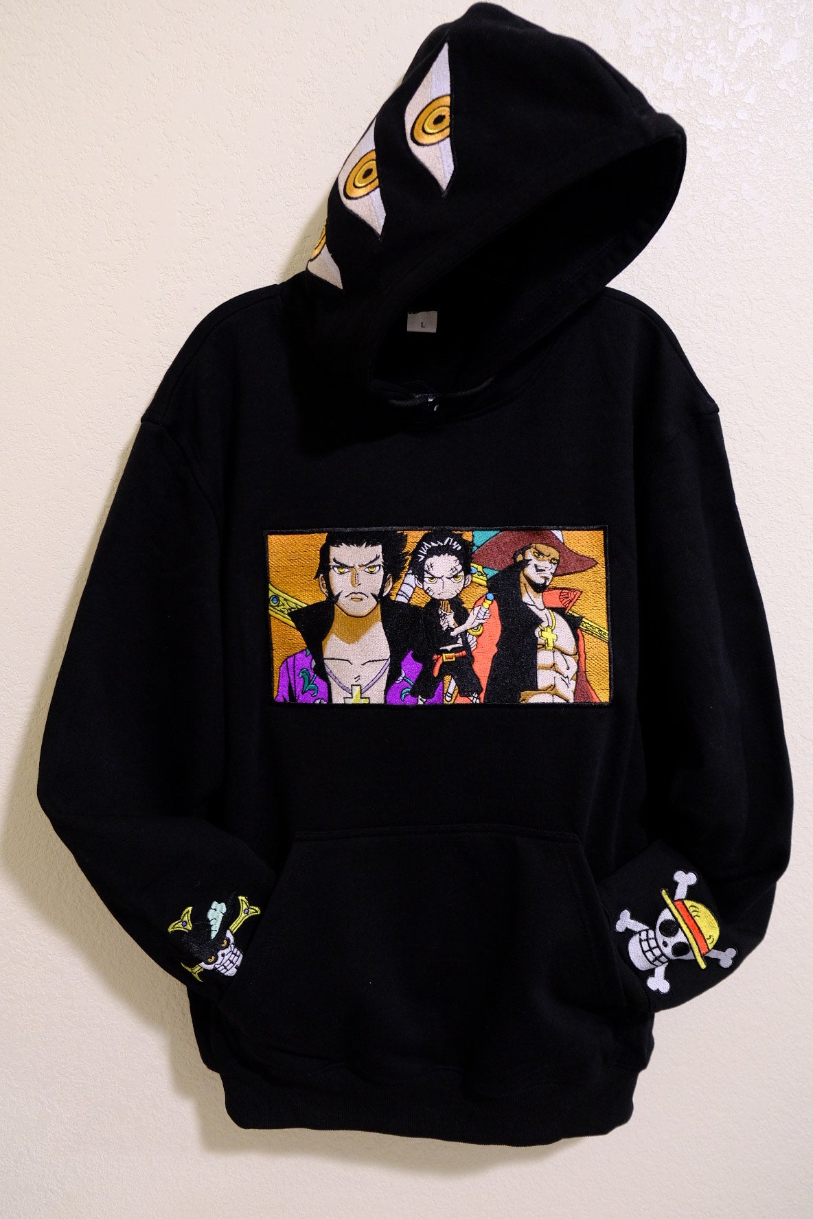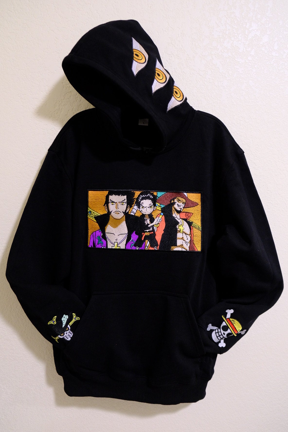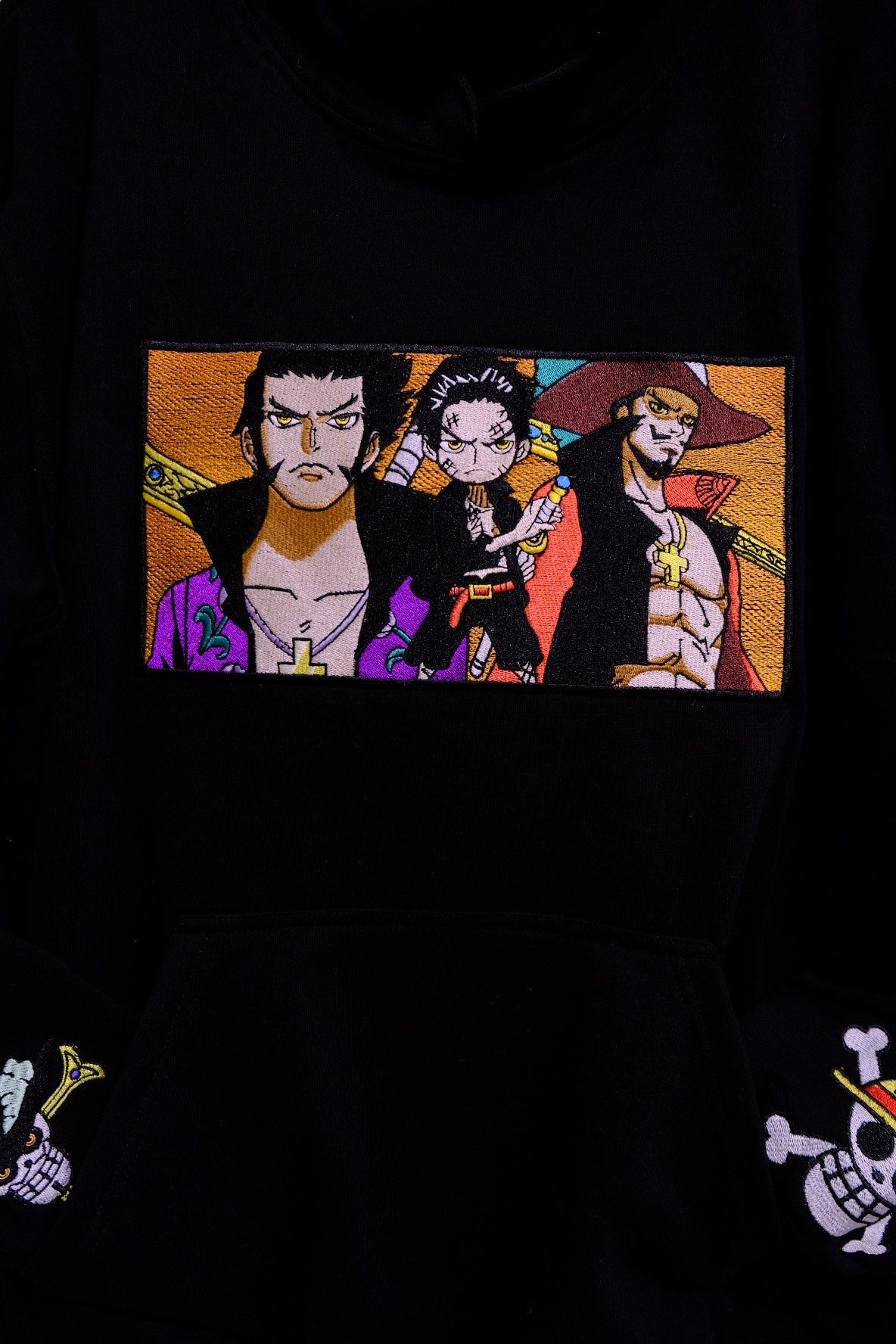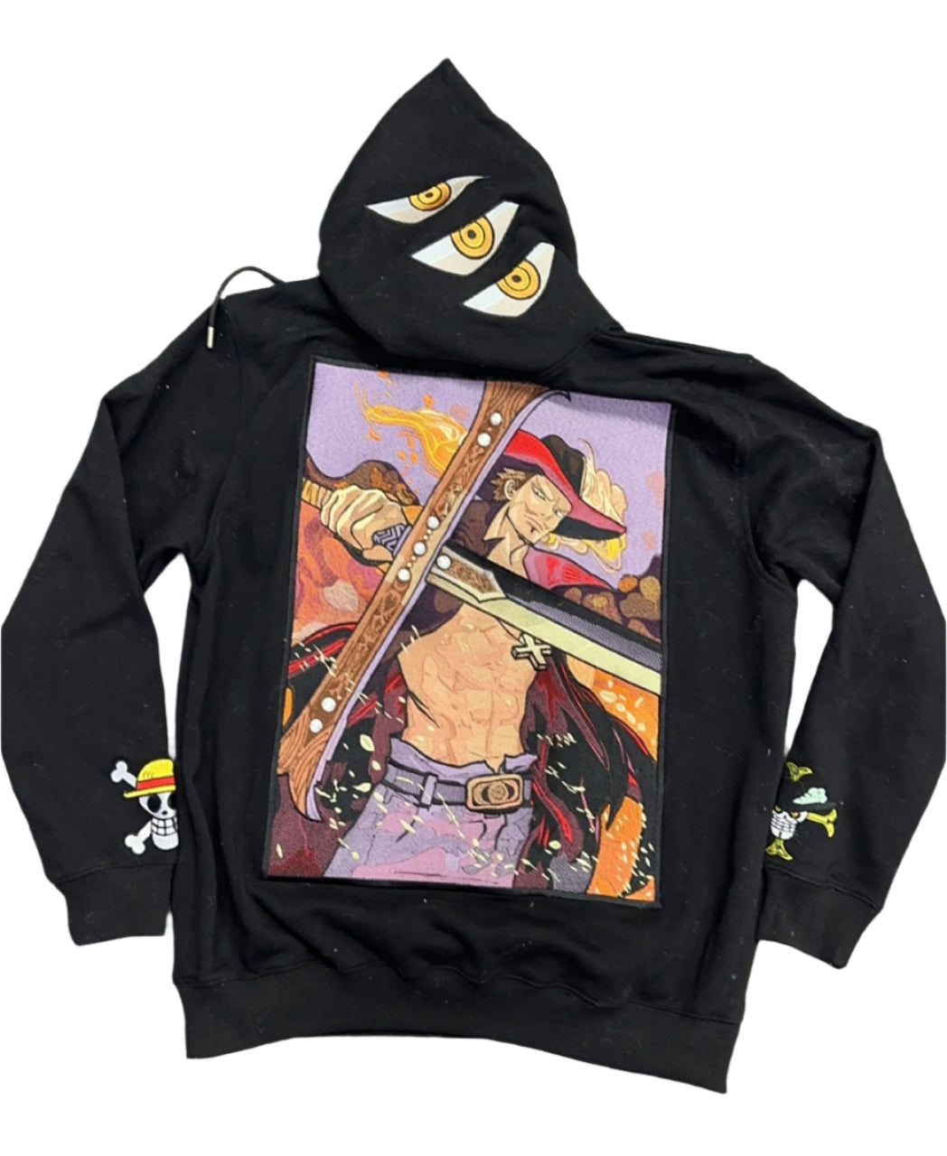 Unleash your inner swordsman with the Hawk Eye Mihawk Embroidered Black Hoodie. A must-have for anime enthusiasts who want to blend their fandom with timeless style.