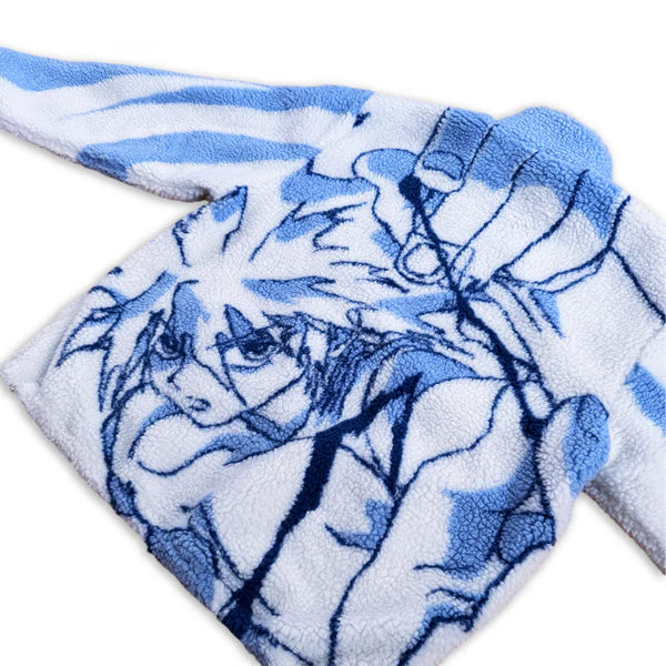 Wrap yourself in the electrifying energy of Killua with the Killua "Lightning" Sherpa Jacket. A must-have for anime enthusiasts who want to stay warm and stylish while showcasing their fandom in a unique way!