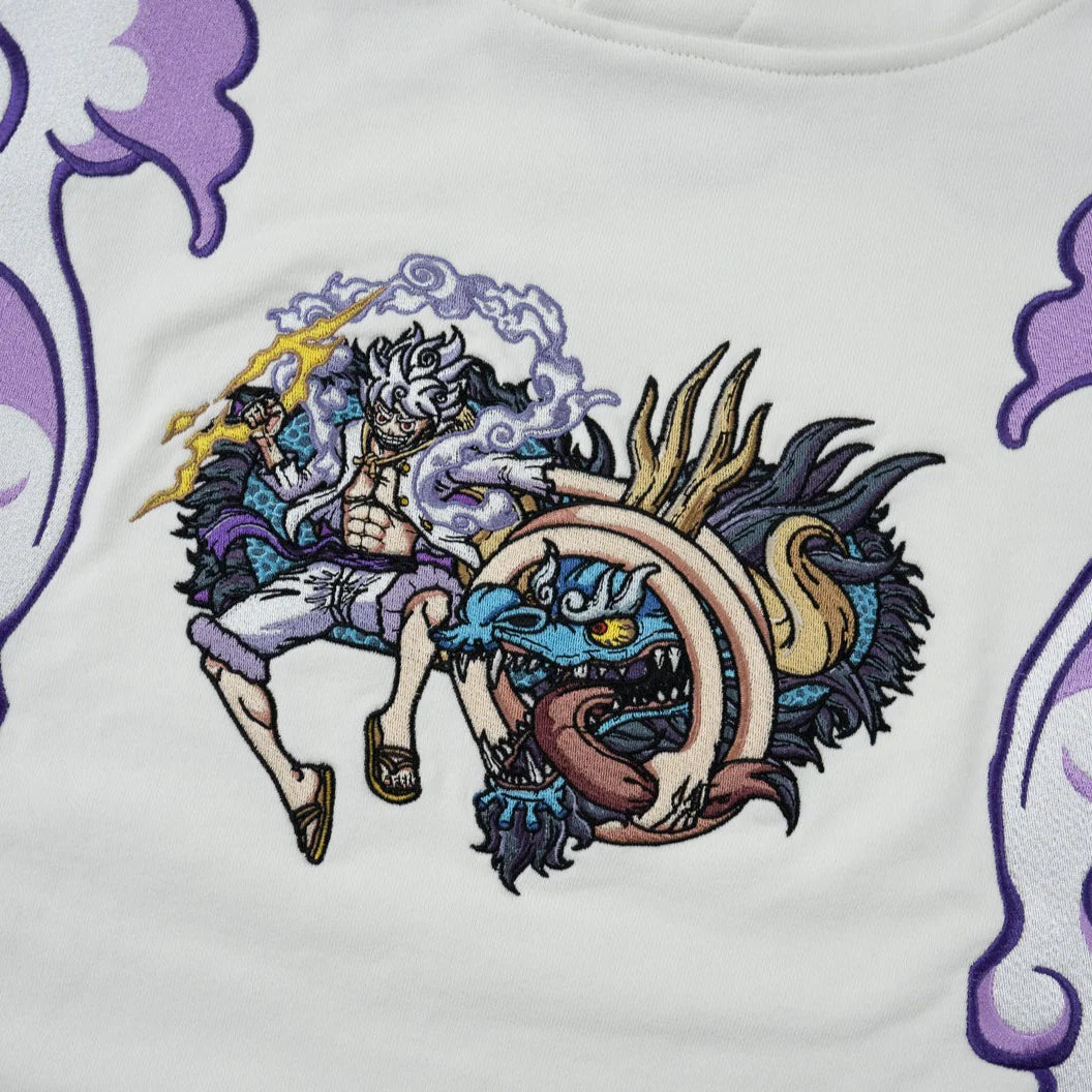 Luffy Gear 5 x Kaido: One Piece Anime Embroidered Hoodie Collection