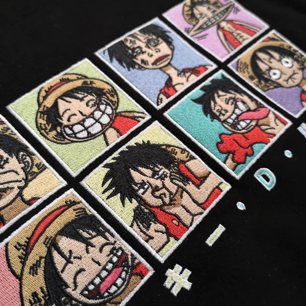 - Detailed Embroidery: High-quality stitching of Luffy’s funniest and most memorable expressions, from his mischievous grin to his surprised face.