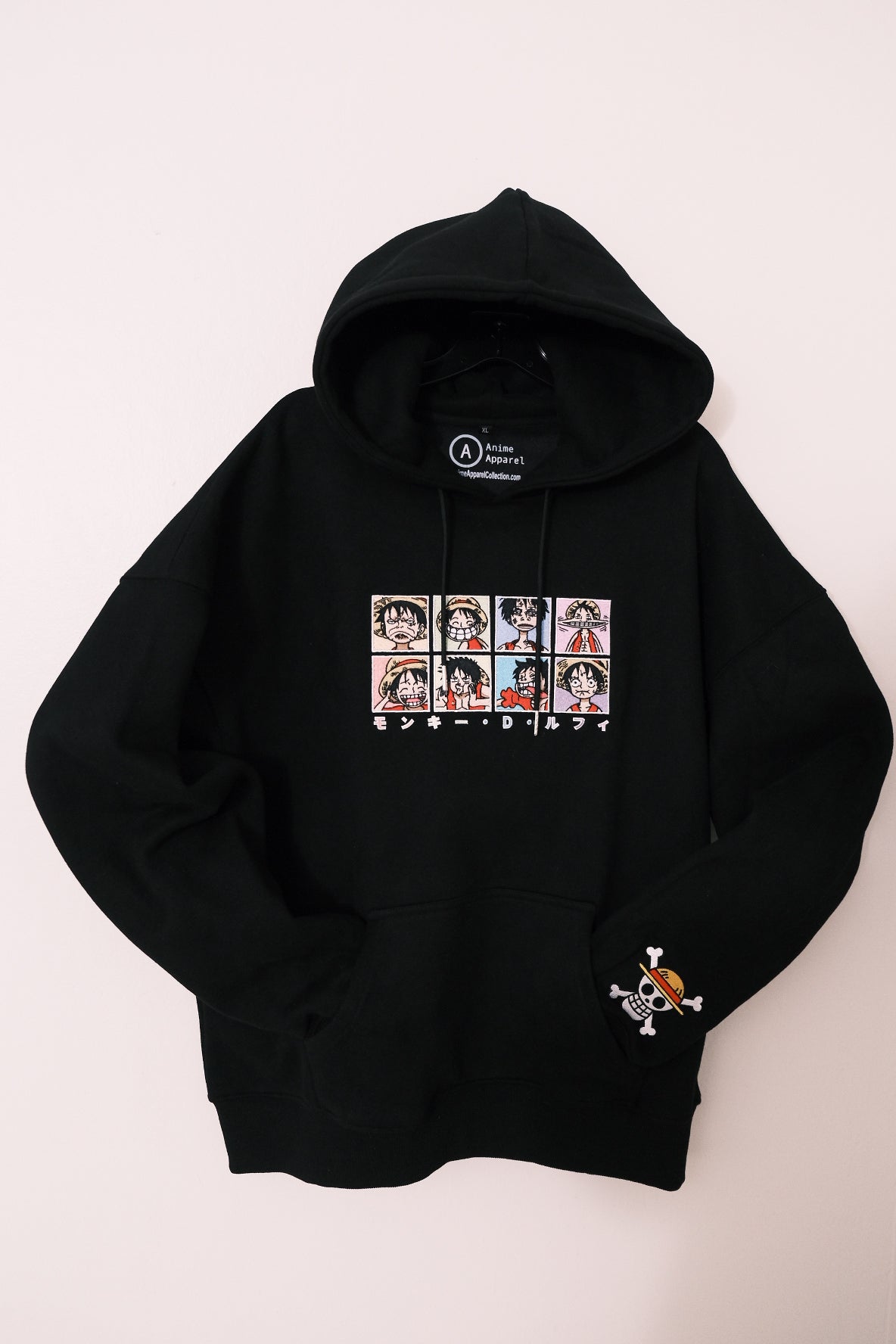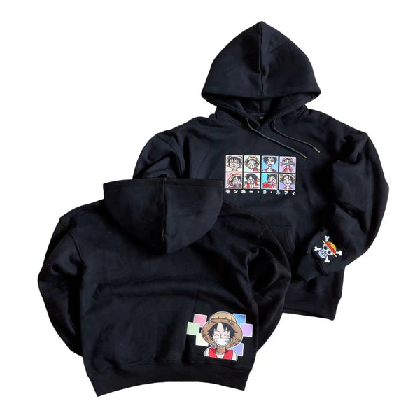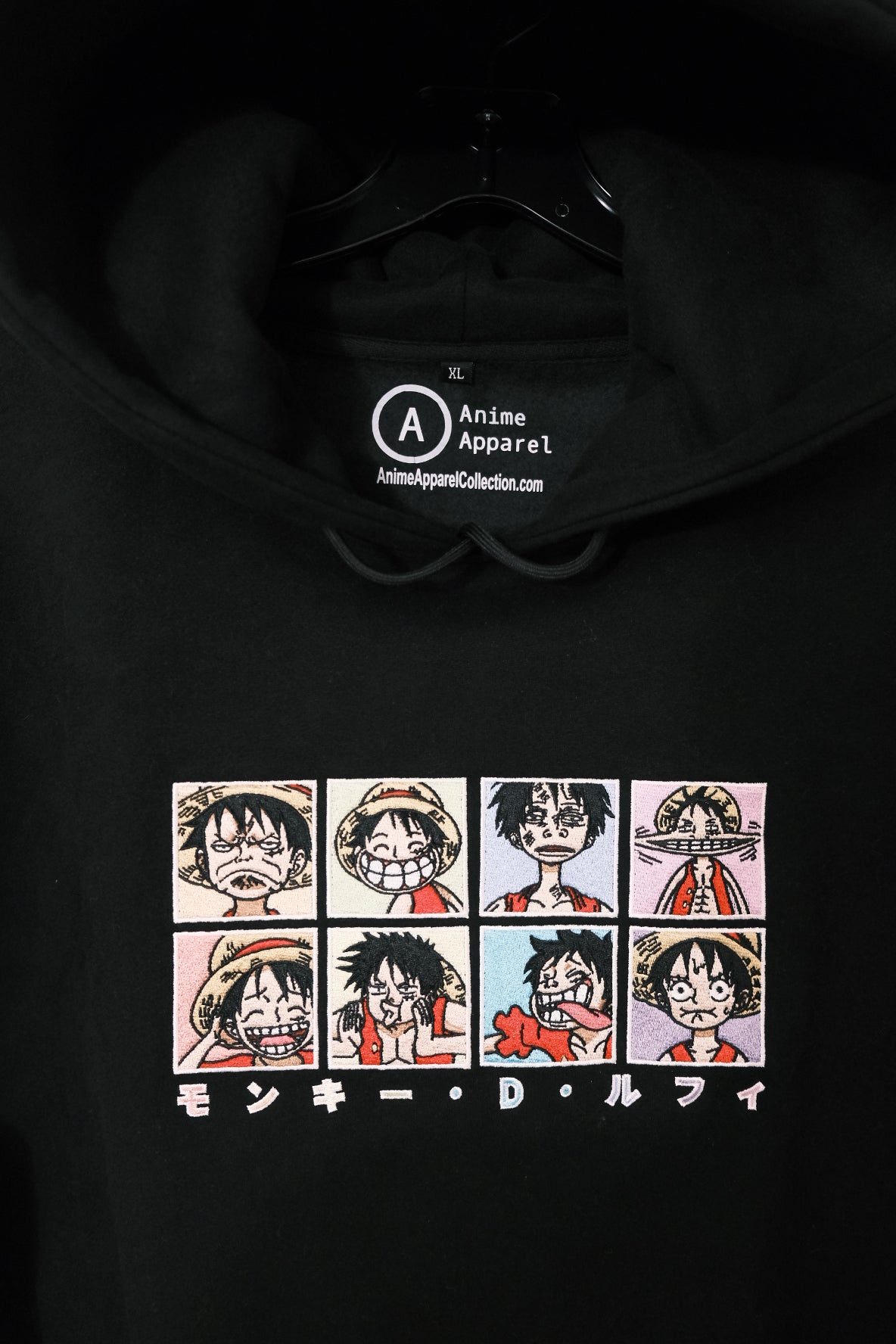 Monkey D. Luffy 'Goofy Faces' Embroidered Hoodie – Embrace the Pirate's Charm!