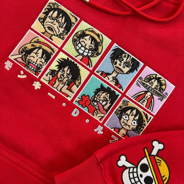 Luffy 'Goofy Faces' Embroidered Hoodie