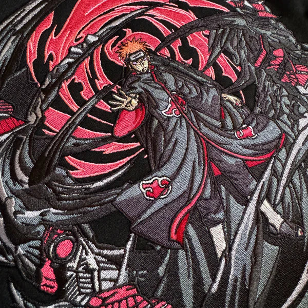 Make a bold statement with the Pain ST Black Embroidered Hoodie, a perfect blend of comfort and striking design. This hoodie is crafted for anime enthusiasts who appreciate iconic characters and timeless fashion.